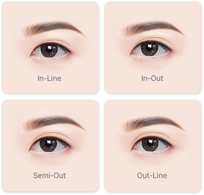 In-Out Line Double Eyelids offer a balance between the natural look of the in-line and the more open, defined appearance of the out-line, making this style highly popular.