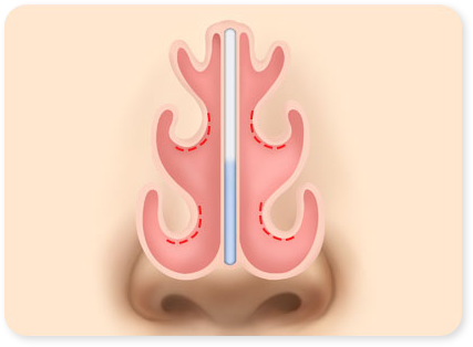 The wide nasal bones are reduced through osteotomy to narrow the width of the nose. If needed,